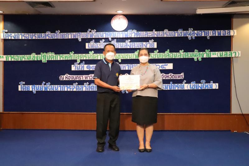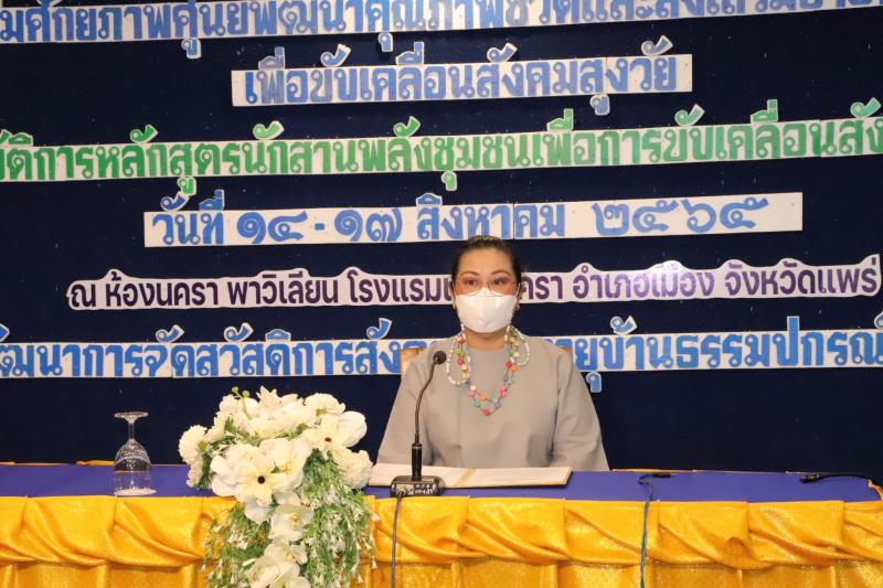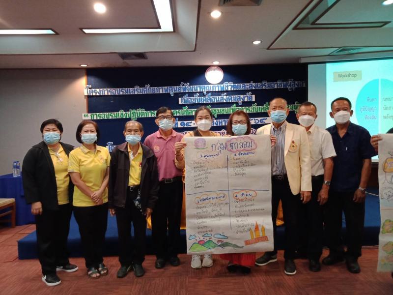โครงการอบรมเสริมศักยภาพศูนย์พัฒนาคุณภาพชีวิตและส่งเสริมอาชีพผู้สูงอายุ (ศพอส.) เพื่อขับเคลื่อนสังคมสูงวัย "การอบรมเชิงปฏิบัติการหลักสูตรนักสานพลังชุมชน เพื่อการขับเคลื่อนสังคมผู้สูงอายุ (นสสว.)"