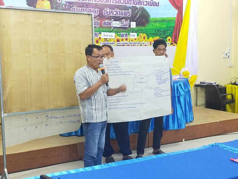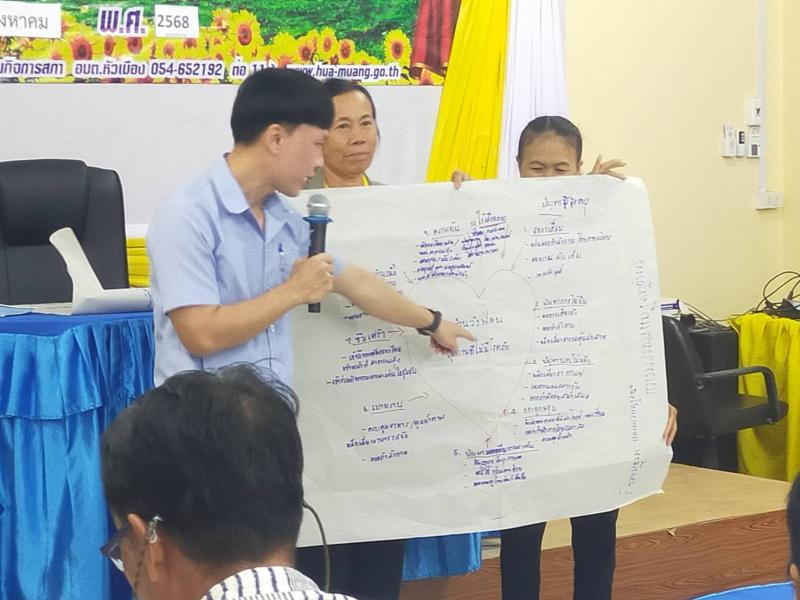 รายละเอียด : วันที่ 1 กันยายน 2568 กองสาธารณสุขและสิ่งแวดล้อมฯ จัดทำโครงการจัดทำแผนสุขภาพชุมชนต.หัวเมือง โดยมีวัตถุประสงค์เพื่อให้ตำบลหัวเมืองมีแผนสุขภาพตำบล สามารถนำมาใช้เป็นแนวทางการบริหารกองทุนระบบหลักประกันสุขภาพฯ นำมาใช้เป็นแนวทางในการแก้ไขปัญหาและกำหนดทิศทางการดำเนินงานในการที่จะให้การสนับสนุนงบประมาณแก่หน่วยบริการ / กลุ่มองค์กรประชาชนและภาคีที่เกี่ยวข้องในการพัฒนาให้เกิดสุขภาวะของประชาชนในพื้นที่และเพื่อให้ทุกภาคส่วนมีส่วนร่วมในการจัดทำแผนสุขภาพชุมชน