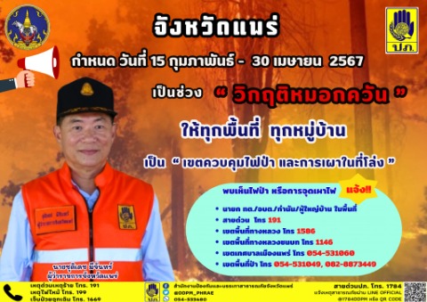 ชื่อเรื่อง : จังหวัดแพร่ ห้ามเผาเด็ดขาด 15 ก.พ. - 30 เม.ย.67
